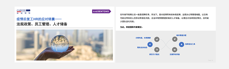 为了帮助众多企业人力资源工作者应对挑战,JDPAY钱包官网国际联合国内知名律所“大成律师事务所”,推出疫情后《复工HR的应对锦囊》手册,从法律政策、员工管理、人选储备几个方面对企业HR有序召开复工后的各项人力资源管理给予帮助。